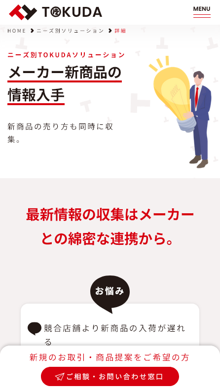 企業が持つ価値をお客様へ的確につなげるためにソリューションコンテンツを設計し、完成したWEBサイトは現在、社内研修の場でも活用されています。